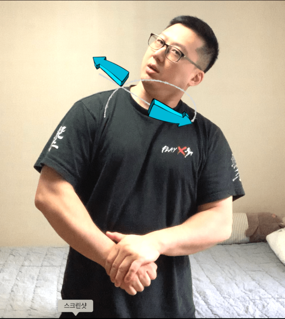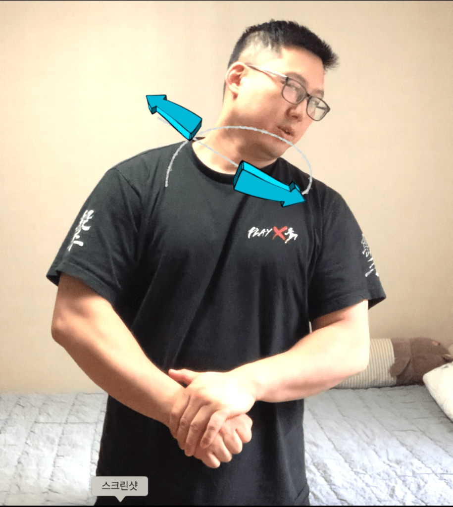 2.목을 약간 꺽은 상태로 좌우로 움직입니다.