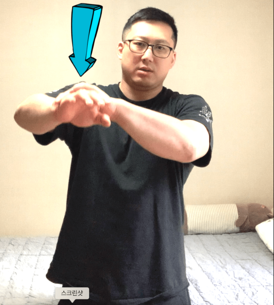 1.운동법 먼저 위팔로 아래팔에 미세한 저항을 줍니다.