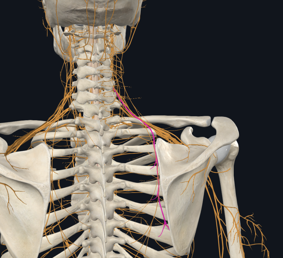 Dorsal Scapular Nerve(등쪽어깨신경)는 경추 5번에서 시작됩니다. 그래서 목의 움직임과 동시에 팔의 움직임이 같이 움직이는 것이 굉장히 중요합니다.