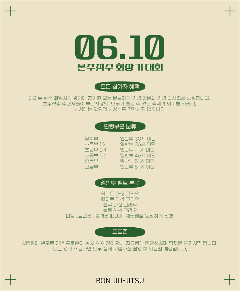 6월 10일에 개최되는 본주짓수 회장기 대회 접수를 시작합니다.
